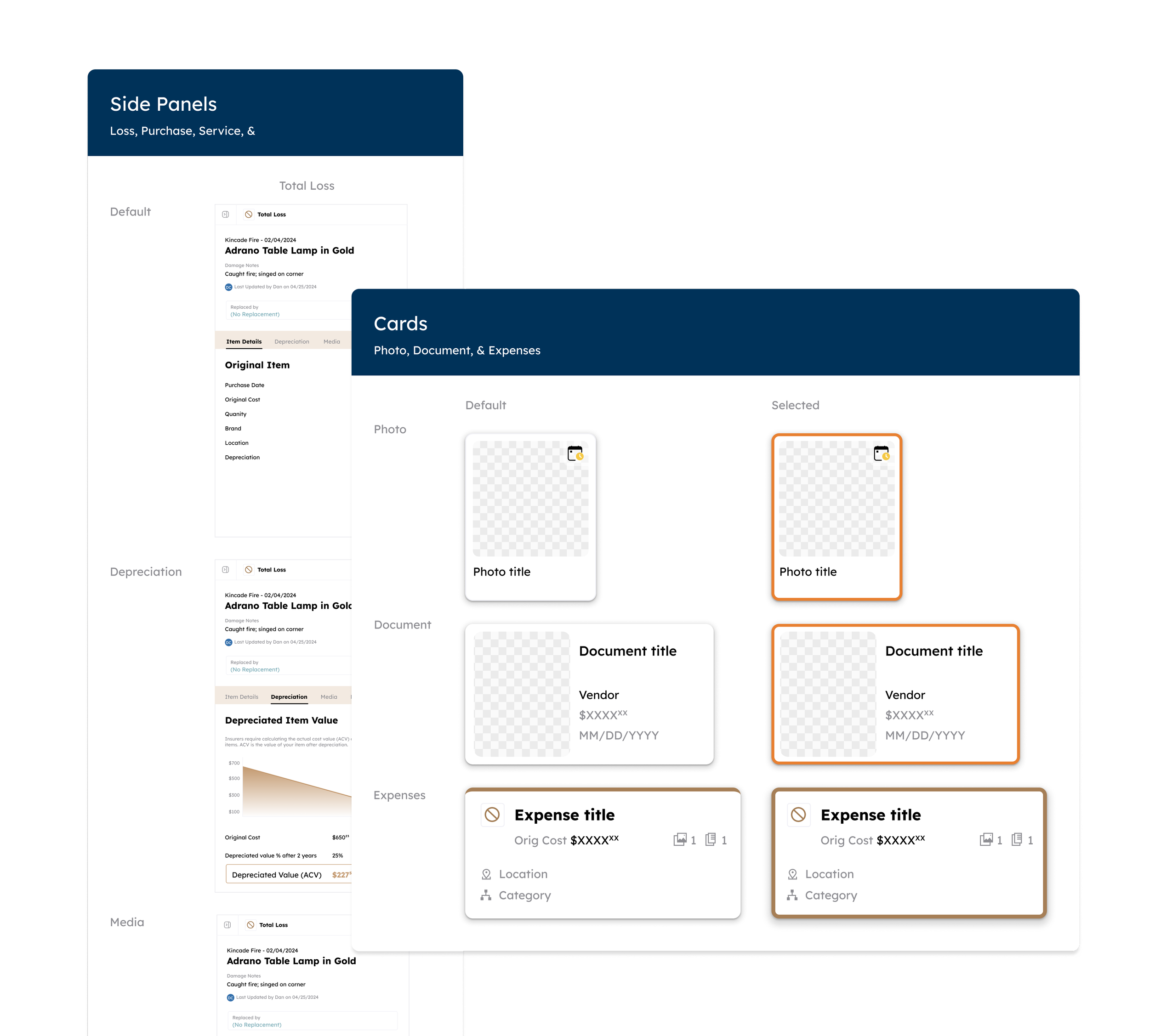 Photos, documents, and expenses unified under a consistent card framework. Established visual/structural consistency across core inventory experiences despite rapid feature changes.